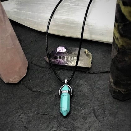 Crystal Stone Pointed Pendants,In Turquoise,Dark Sand Stone and Pink Agate.
